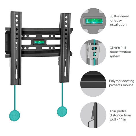 Fixed TV Wall Mount for 17" to 43-inch TVs Screens up to 66 lbs ONKRON FM1, Black