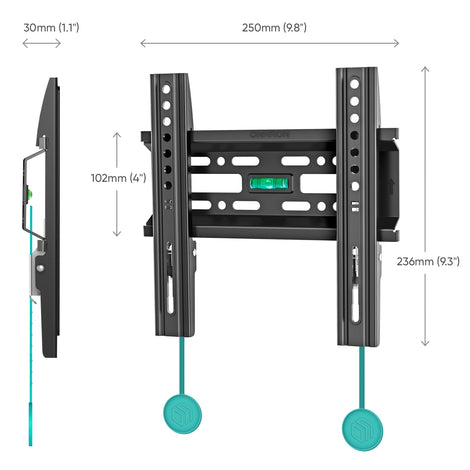 The mount's slim profile will render it practically invisible behind your TVset.