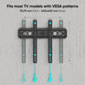 VESA patterns are measured by the center of one mounting hole to the center of another on the back of a television in millimeters. In the example above, the VESA measurements are 100 (width) x 100 (height). The example TV would be able to use a VESA 100 x 100 mount.