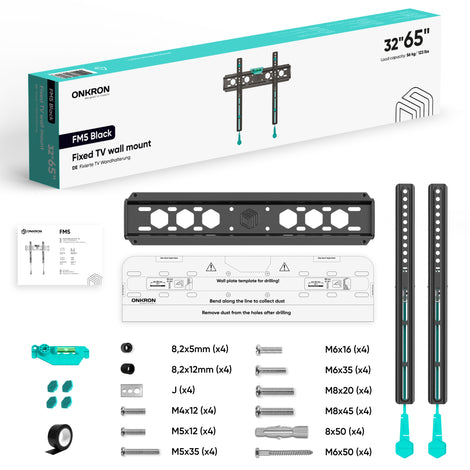 Fixed TV Wall Mount for 35" to 65-inch TVs Screens up to 123 lbs ONKRON FM5, Black