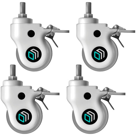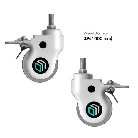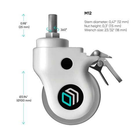 Multipurpose 3.95-inch size of the wheels with a 0.47” (M12) stem can be attached to any desk, cart or a mobile TV stand; these locking caster wheels can be a perfect replacement for standard wheels of TV carts by ONKRON, including models TS1551, TS1881, TS2771 and others (all mobile stands except for TS1351 and TS2551).