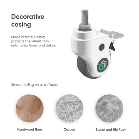 Each caster features elegant and durable plastic casing which will look great on any kind of equipment, not just ONKRON TV stands. Casing protects the wheels from the elements - be it cat hair or dust.
