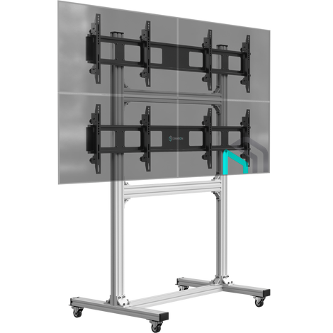 Freestanding Mobile Video Wall Stand for 4 Screens 40"-50" ONKRON FSPRO2L-22, Silver