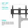 Supports four 40” to 50-inch displays. Fits practically all modern screens - LCD, LED, OLED, Ultra HD, plasma, curved and flat panel screens with the following VESA mounting standards: 200x200, 300x100, 400x200, 200x300, 300x200, 300x300, 300x400, 400x300, 400x400, 500x400, 600x200, 600x300 and up to 600x400 mm.