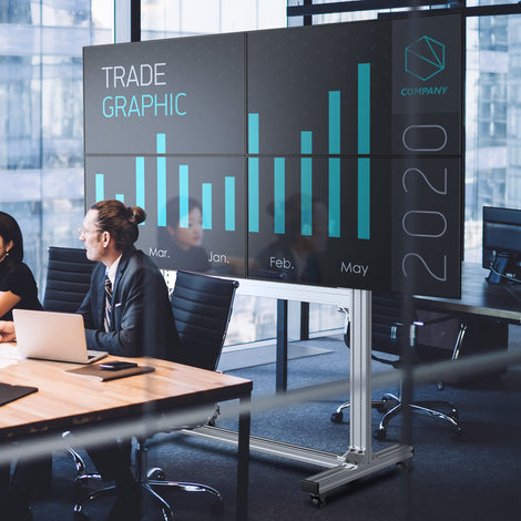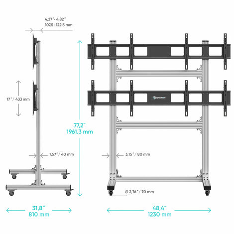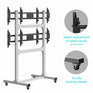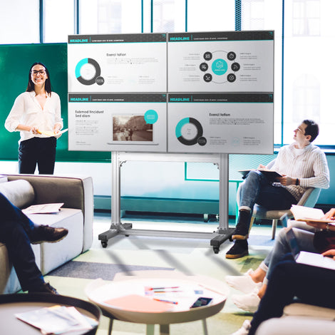 The FSPRO2L-22 has a heavy-duty aluminum frame with height-adjustable TV mount brackets, a steady base with four lockable caster wheels. Applications: Mounting four screens on a portable cart is a smart and easy solution for business, conference rooms and boardrooms, classrooms, professional, non-profits and community organizations, expos, educational and entertainment venues.
