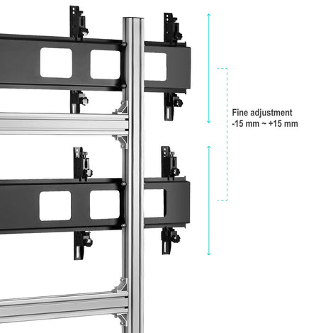 One of the best features of this video wall stand is the fact that the depth of each corner of each screen can be adjusted using the fine-adjustment levers!