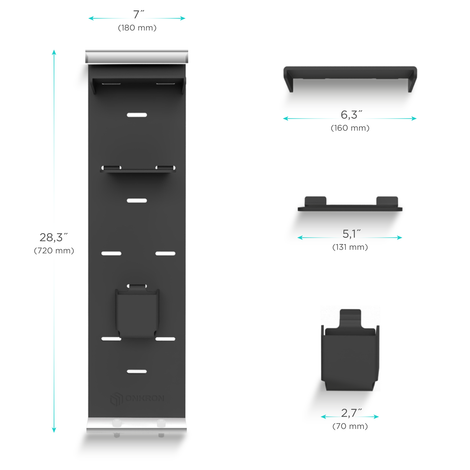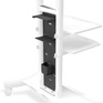 APP1881 is a simple, but useful expansion for your mobile TV stand TS1881. It consists of the main vertical panel and the following additions: plastic shelf for your devices, a mount for cable winding and a glass for accessories. It is simple and useful. Strong plastic provides load capacity of 4.4 pounds on each element. You don’t have to choose what shelves to use because APP1881 doesn't interfere with the main middle shelves of your ONKRON TV stand.