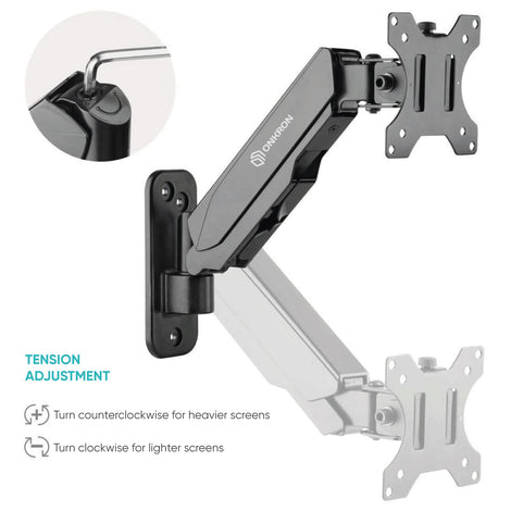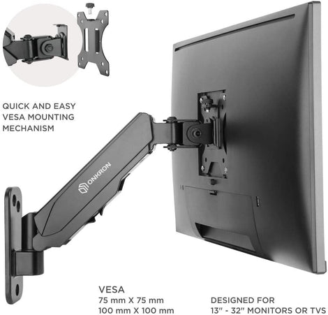 Full Motion Gas Spring TV Wall Mount for 13" to 32-inch Screens ONKRON G120, Black