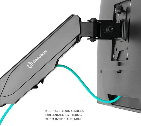 Fully adjustable articulating arm features tilt -35 ~ +35 degrees. Thanks to gas-spring system the arm goes up and down, helping you to reduce eye, back and neck strain.