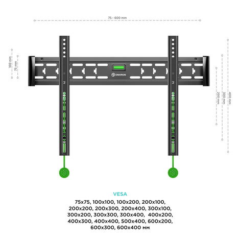 Fixed wall mount ONKRON FM6 combines design, quality, easy installation and affordability without any compromises. It is a new solution designed to fit most 43" – 85 inch 4K HDR, OLED, QLED, 8K, LCD, LED, Full HD flat panel and curved screens, huge gaming monitors and displays with the following VESA hole patterns: 75x75, 100x100, 100x200, 200x200, 200x300, 200x400, 300x100, 300x200, 300x300, 300x400, 400x200, 400x300, 400x400, and up to 600x400 mm.