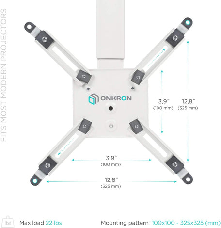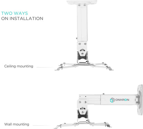 Projector Mount Ceiling Adjustable Bracket up to 22 lbs Projectors ONKRON K3A, White