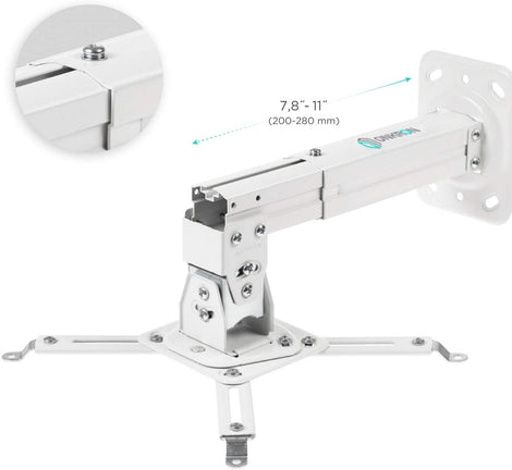 Projector mount is fully adjustable and has -20° ~ +20° tilting along with 20° swiveling. It is height adjustable 10.9” – 14.9” from the ceiling. You are able to set perfect angles for your projector and fully enjoy using it. Snow-white powder-coated design can fit any interior and any projector.