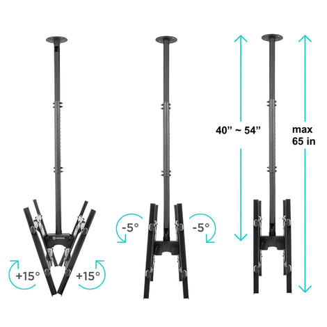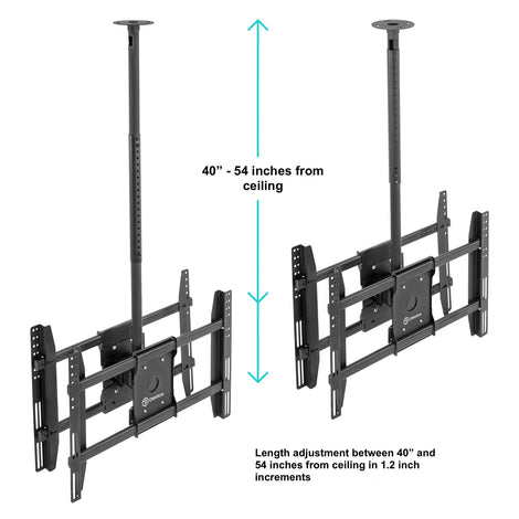ONKRON Ceiling Dual TV Mount Height Adjustable Tilting for 2 Screens 40"-80" LED LCD TVs (N3L)