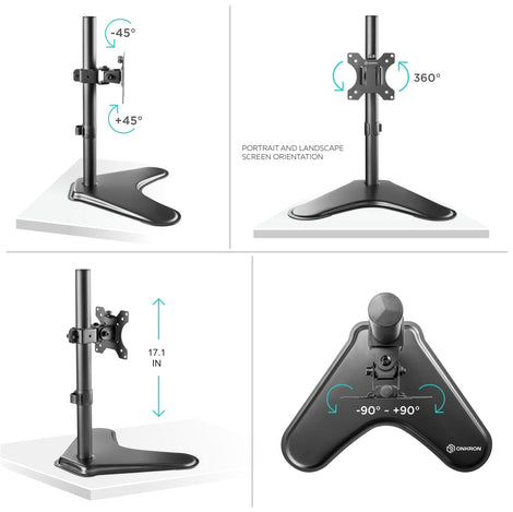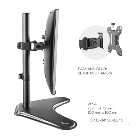 - Height-adjustable desktop computer screen stand ONKRON D101FS is compatible with 13-34" screens that weigh up to 17.6 lbs