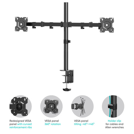 Dual Monitor Mount for 13"-32" Screens up to 17.6 lb. Each ONKRON D221E, Black