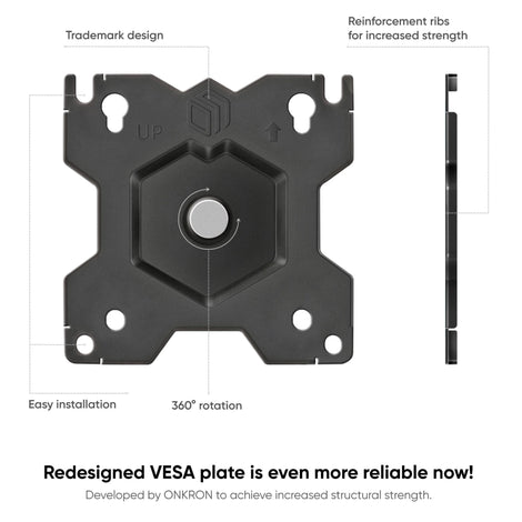 The mount is made of high-quality SPCC steel and the VESA plate features reinforcement ribs which improves load capacity.