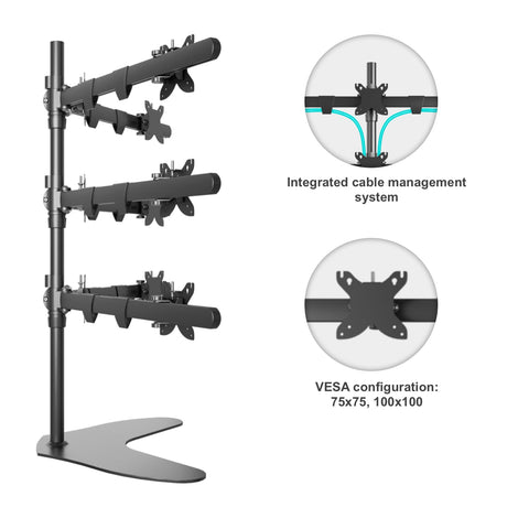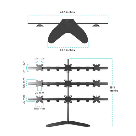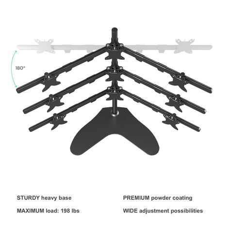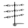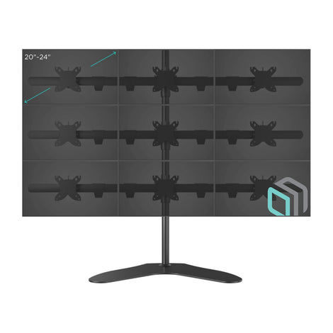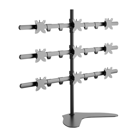Desktop stand for 9 monitors with diagonals between 20" and 24", each weighing no more than 22 lbs (max load 198 lbs) with VESA 75x75 and 100x100 mm. Professional solution for office buildings, security stations, NASA flight control rooms, etc.