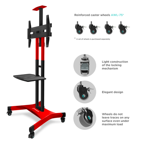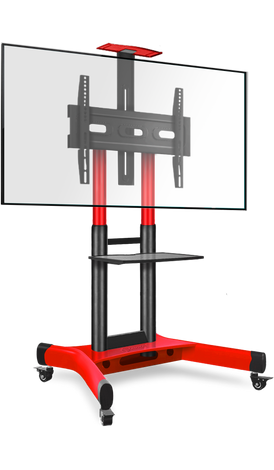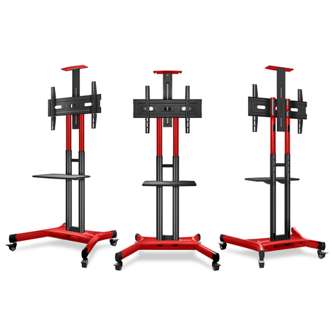 ONKRON's model in TS1551-RED is a rolling TV cart designed for the most common size screens ranging from 40" to 70 inches (measured diagonally). Going mobile has never been more satisfying. Just roll the TV stand anywhere you want it. Simply forget about a stationary screen while video teleconferencing. Even making small adjustments due to sun and glare has never be so easy. All our units have shelves designed to accommodate either web-cams, video game consoles, streaming devices and much more.