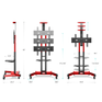 Mobile TV Stand Rolling TV Cart for 40” – 70 inch Screens up to 100 lbs ONKRON TS1551, Red