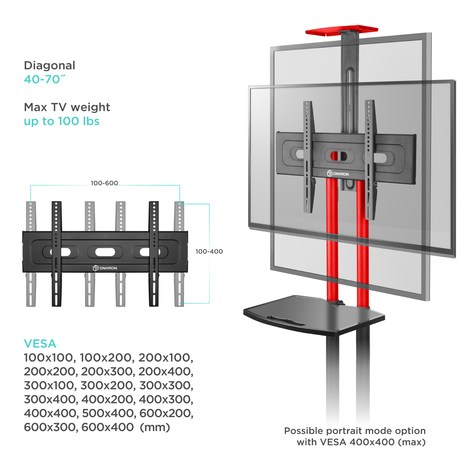 Strong and durable frame is made of SPCC steel and can easily hold TV sets weighing up to 100 lb. (45 kg). This cart has undergone a triple load test - it is safe and sound.