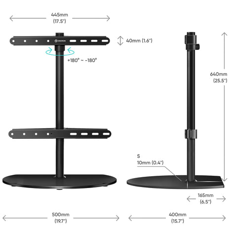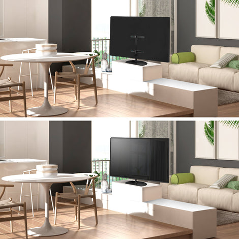 ✔️TV BASE WITH SWIVEL: the swivel function allows for the screen's rotation up to 360° in each direction. You can easily turn the TV to the desired side without tools. Convenient to use in multi-zone spaces.