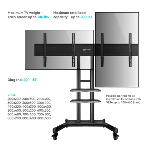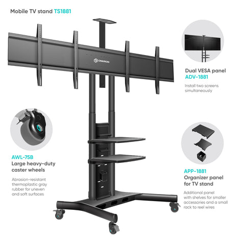 Dual Screen VESA Panel Accessory for TS1881 Mobile TV Stand ONKRON ADV-1881, Black