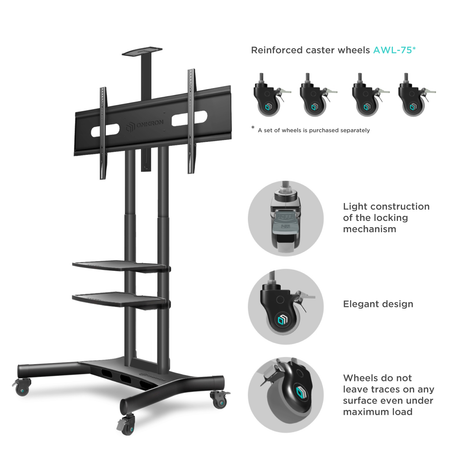 Mobile TV Cart with AWL100 Wheels Extra Shelf/ Panel Tilting ONKRON TS1881-SET
