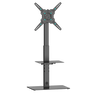 The ONKRON TS5040 is a freestanding TV stand ideal for medium size screens. Its heavy duty design consists of SPCC (cold rolled carbon steel) and tempered glass components, which improves load capacity. The mounting bracket is VESA compatible (100 mm x 100 mm minimum to 400 mm x 400 mm maximum) with most large, flat or curved TVs/gaming monitors: LCD, LED, OLED, QLED, HD, 4K; with diagonal measurements from 32" - 65 inches weighing up to 66 lb.