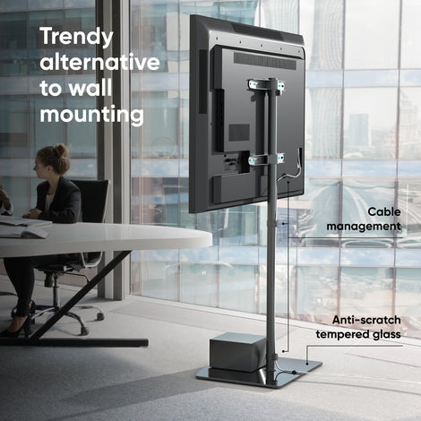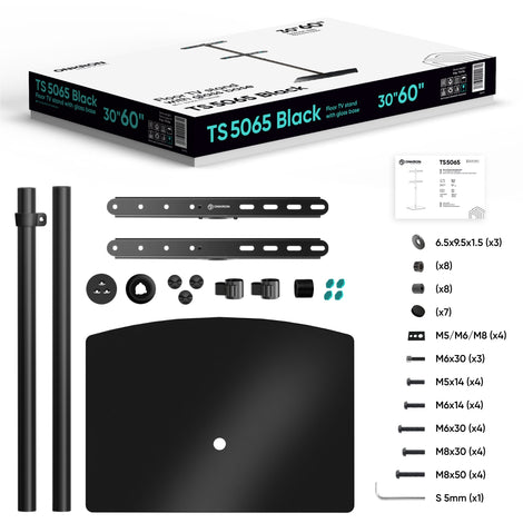 Universal Floor TV Stand w/ Glass Base for 30-60" TVs ONKRON TS5065, Black