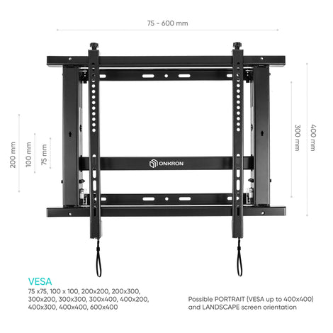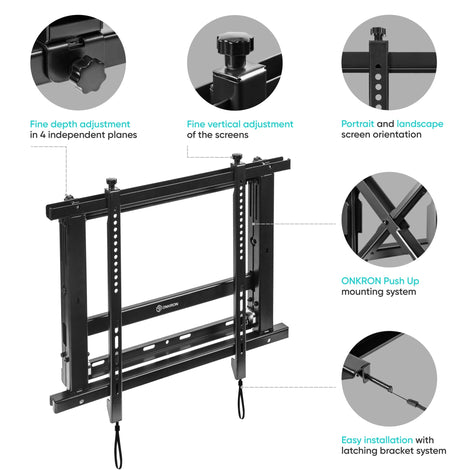 Video Wall Mount Solution for 40" to 70-inch Screens Pop Out ONKRON PRO7M, Black