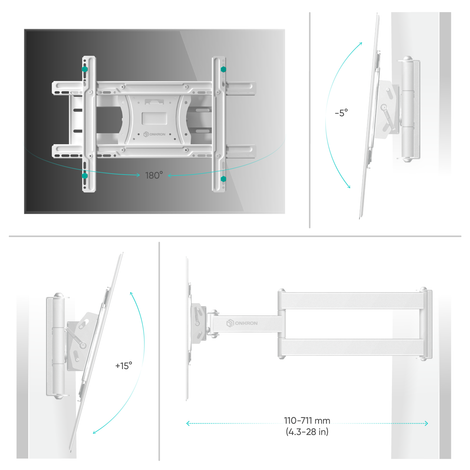 ONKRON manufactures and distributes high-quality mounting solutions for TV screens, computer monitors and displays for over 10 years worldwide. Wall mounting is a classic solution for home and office, big and small businesses, conference rooms, boardrooms, classrooms. Our extensive product line includes TV wall mount models in classic black and white colors for any interior style at home or business, elegant or contemporary. Slim design of the mount allows full arm extension and is fully retractable to hide the mount behind your TV.