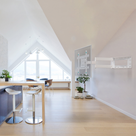 M7L has a long mounting arm for maximum reach with bigger heavier TVs and screens with bigger diagonals. When you fully extend TV wall mount you can easily swivel your big screen TV up to 180 degrees.