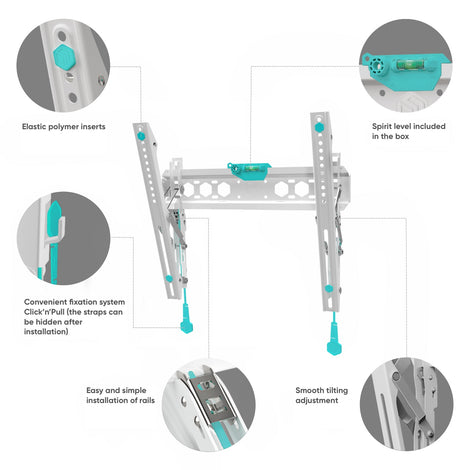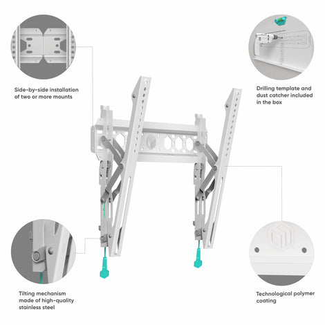 Equipped with ONKRON's signature turquoise polymer inserts that protect the back of the TV from any mechanical damage.