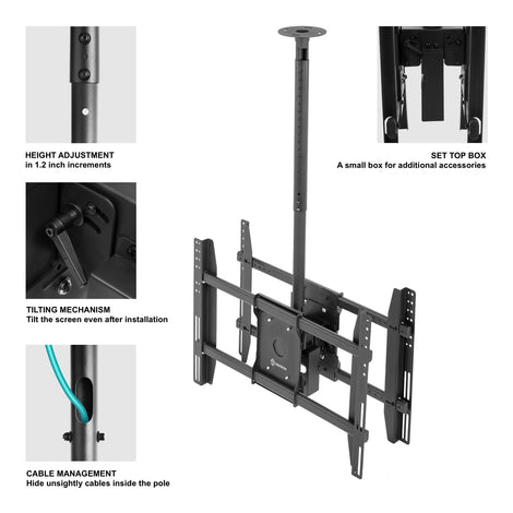 ONKRON Ceiling Dual TV Mount Height Adjustable with AV Box Tilting for 2 LED LCD TVs (N4L)