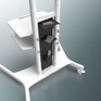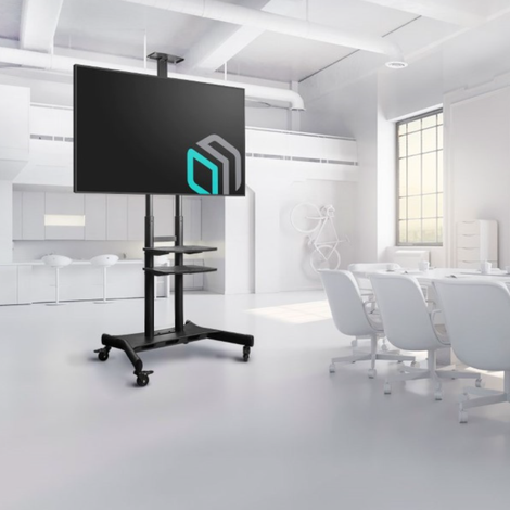 The stand can be upgraded using ONKRON's ADV-1881 dual VESA panel, effectively transforming it into a mobile video wall for two screens.