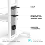 Comes with 2 middle shelves for your accessories with load capacity of up to 10 lbs each for audio video equipment, receivers, gaming accessories or laptop, and a smaller one on top, with additional 10 lbs capacity weight, often used for webcam or gaming motion sensing input devices.